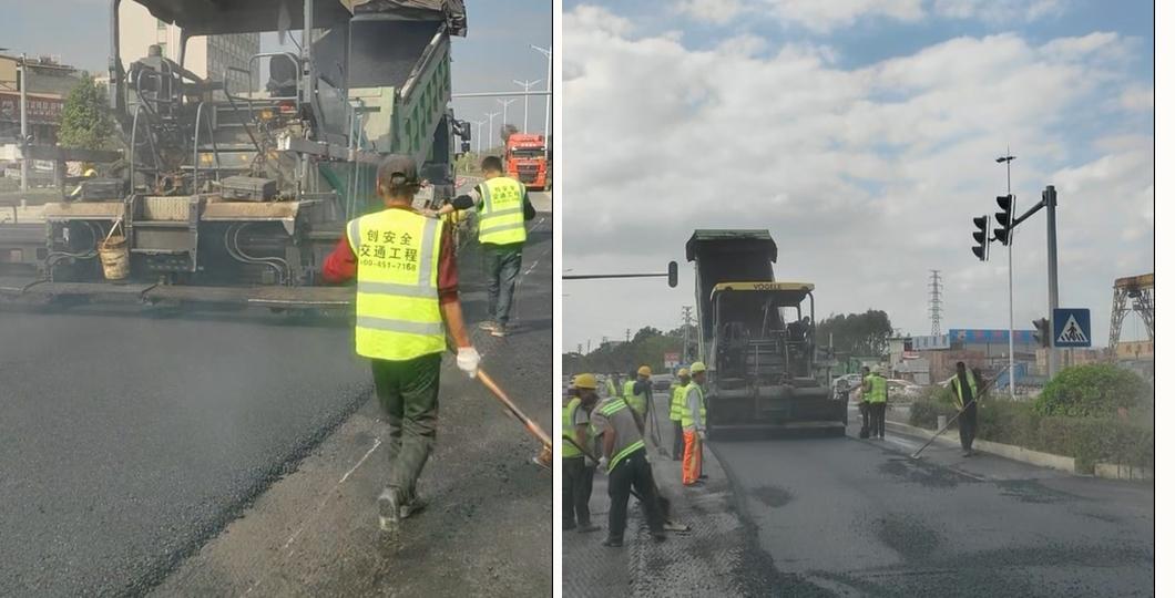 作为本次项目施工单位,深圳市创安全交通设施有限公司结合项目现场实际工况、设计规范及惠东本地气候特点,量身定制病害精准处置+分层精细化摊铺+全程质量管控的施工方案,全流程标准化作业,从根源保障工程品质与道路耐久性。